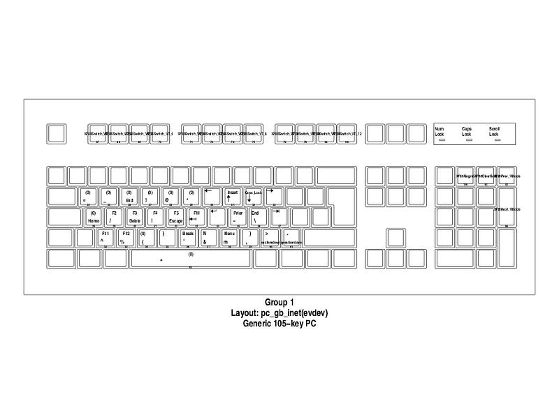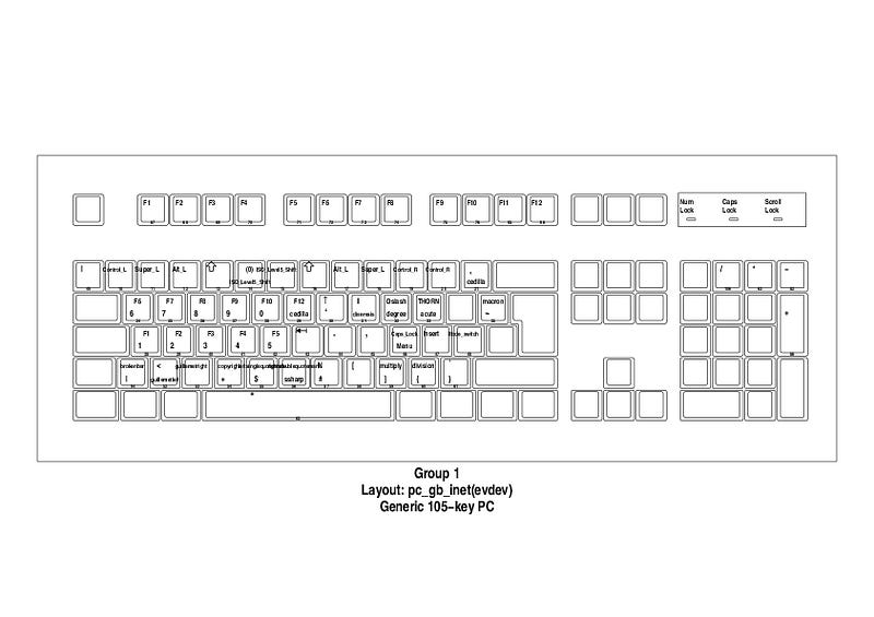 xkbcomp map.xkb :0 # reloadThis allowed me to circumvent all the magic setxkbmap logic. The downside this is that my keyboard might not work with a different type of keyboard layout. setxkbmap, while rather big, nested, and monolithic does provide a level of indirection allowing you to support different keyboards models — but the modifier logic is quite low-level and I could not work out how to override it.